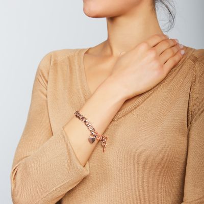 Heart Rose Gold Tone Steel Bracelet Jf02965791 Fossil